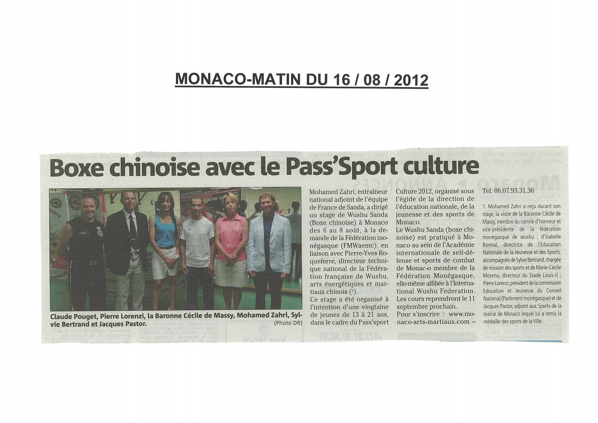 Stage de Boxe Chinoise Pass’Sport Culture à Monaco, (août 2012), avec l’entraîneur de l’équipe de France Mohamed Zahri 15 août 20128 mars 2026Stages WS